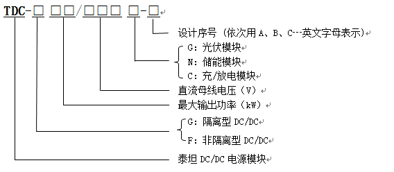 例如:泰坦60KW非隔離型光伏DC/DC模塊,直流母線電壓是750V,它的型號是:TDC-F60/750G-A。
